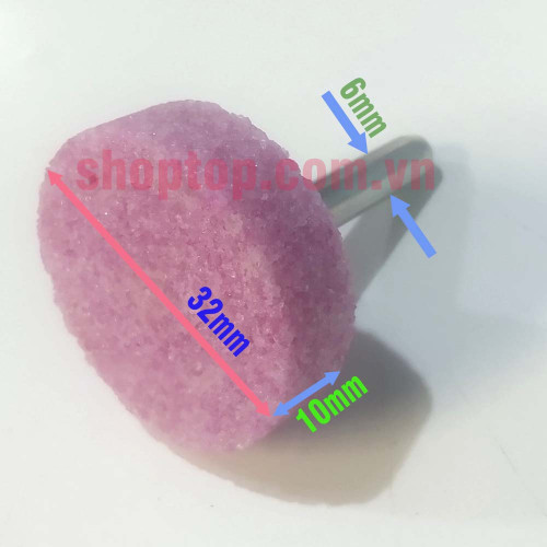 - Đá đầu mài Đài Loan trục sắt tròn 32.10.6 có đường kính là 32mm, chiều sâu viên đá là 10mm và đường kính trục sắt là 6mm.