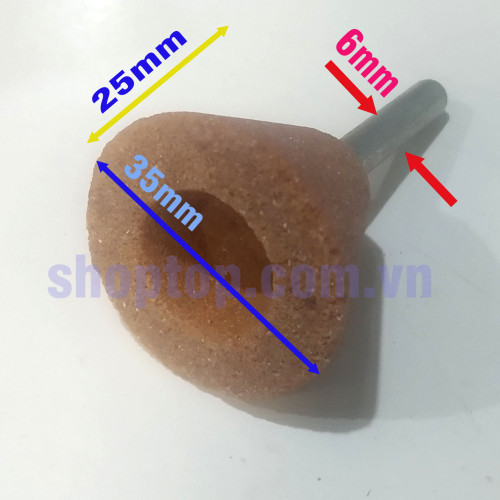 Tag: đá đầu mài hình chóp 35x25x6, đá đầu mài trục sắt, đá mài nâu hình nón chóp,