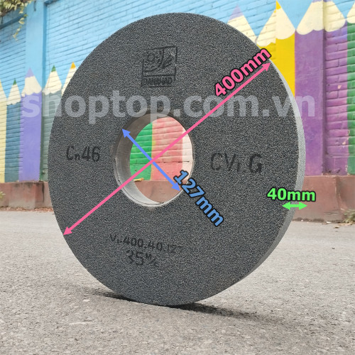 - Đá mài V1 400x40x127 Cn46CV1G cho máy mài bàn là loại đá khổ lớn với đường kính ngoài 400mm, đường kính trong là 127mm và chiều dầy viên đá là 40mm.