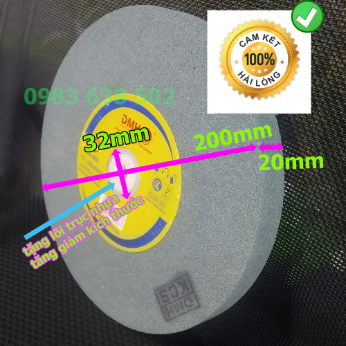 - Đá mài hợp kim siêu mịn dày 20mm đường kính 200mm với lỗ trục 32mm được sản xuất bằng hạt cacbua silic xanh tại Công ty CP đá mài số 1 Hải Dương.