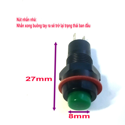 - Đặc tính nhấn xong buông tay ra sẽ trở lại trạng thái ban đầu, đường kính của nút bấm là 8mm và chiều dài phần nút là 27mm.